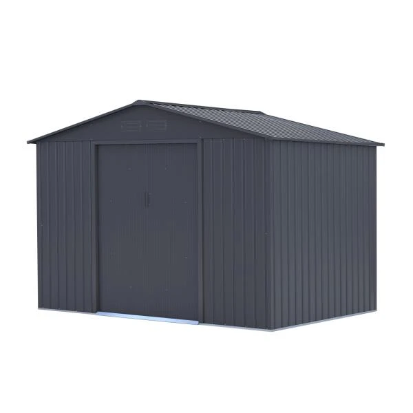 Een kwalitatief metalen tuinhuis van Sinolily met zadeldak en dubbele schuifdeur. Makkelijk te monteren en gratis aan huis geleverd.